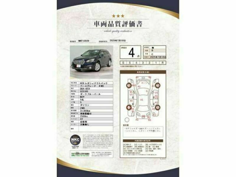 2016 SUBARU LEGACY OUTBACK BS9