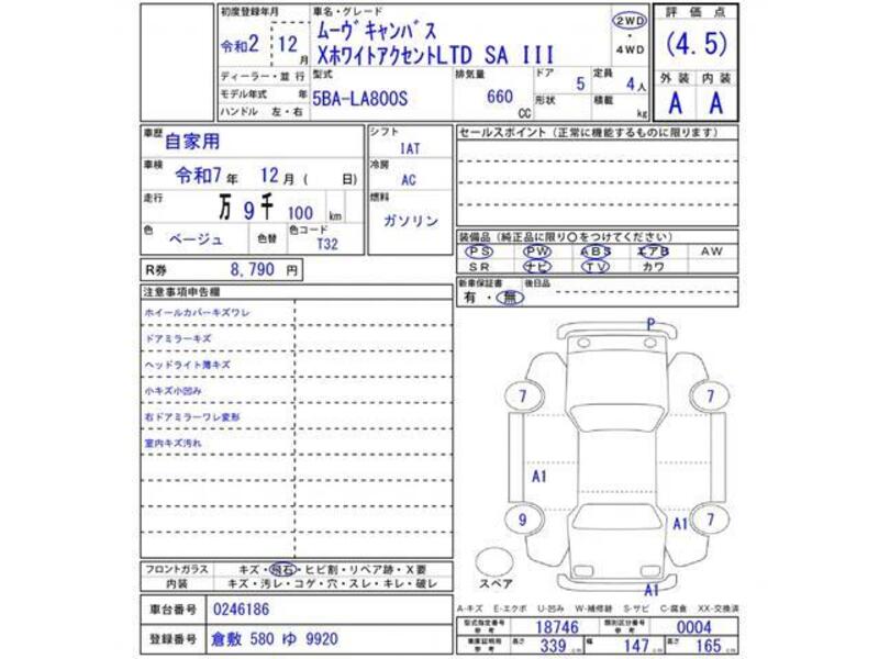 2020 DAIHATSU MOVE CANBUS LA800S
