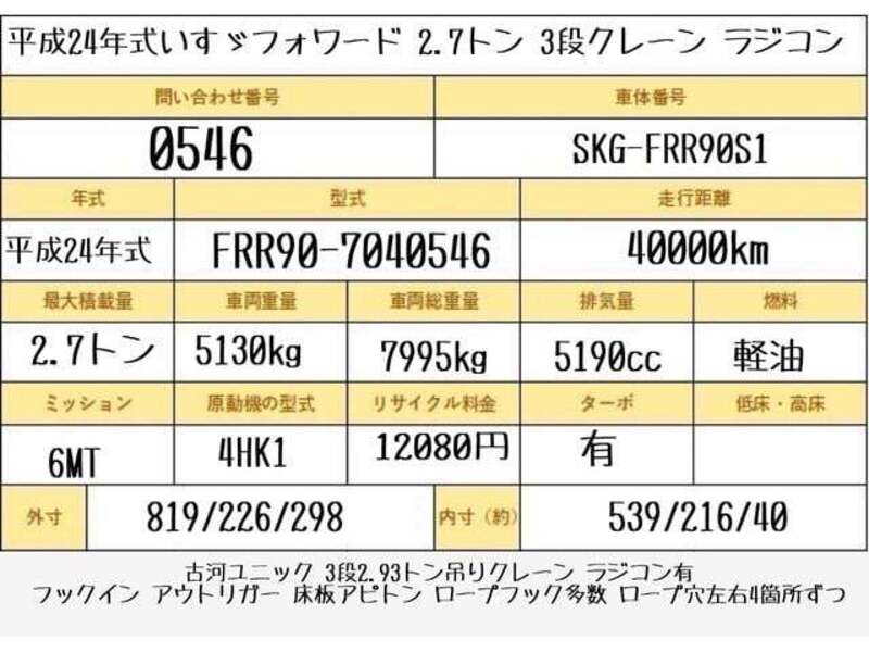 2012 ISUZU FORWARD FRR90S1